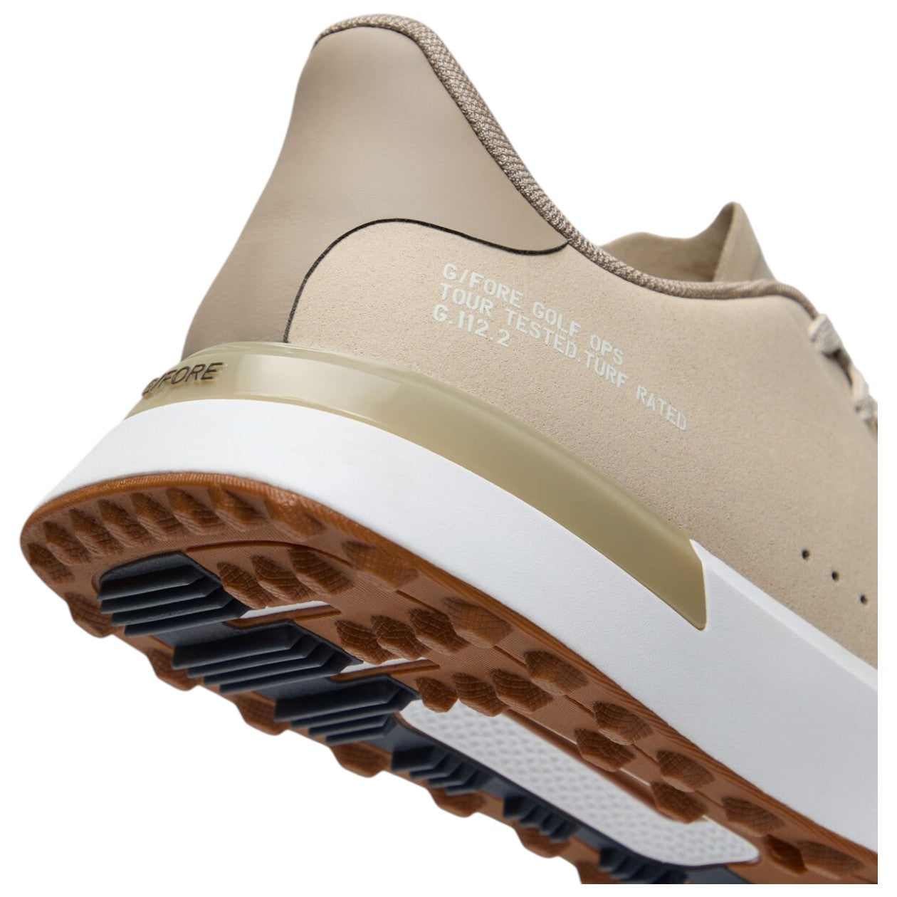 The new g.112 golf shoe has an updated anti-slip grip outsole with the same sleek silhouette and low-drop design that enhances your connection to the ground. Equipped for optimal grip with heel-to-toe turf traction, it's the go-to shoe for all day play with a comfortable eva midsole and mesh lining. This premium suede version pairs well with trousers and a polo for a look that works on the course or at the clubhouse. Features Made with premium suede Heel-to-toe turf traction Low-drop silhouette designed to enhance ground-feel Mesh lining for breathability & comfort