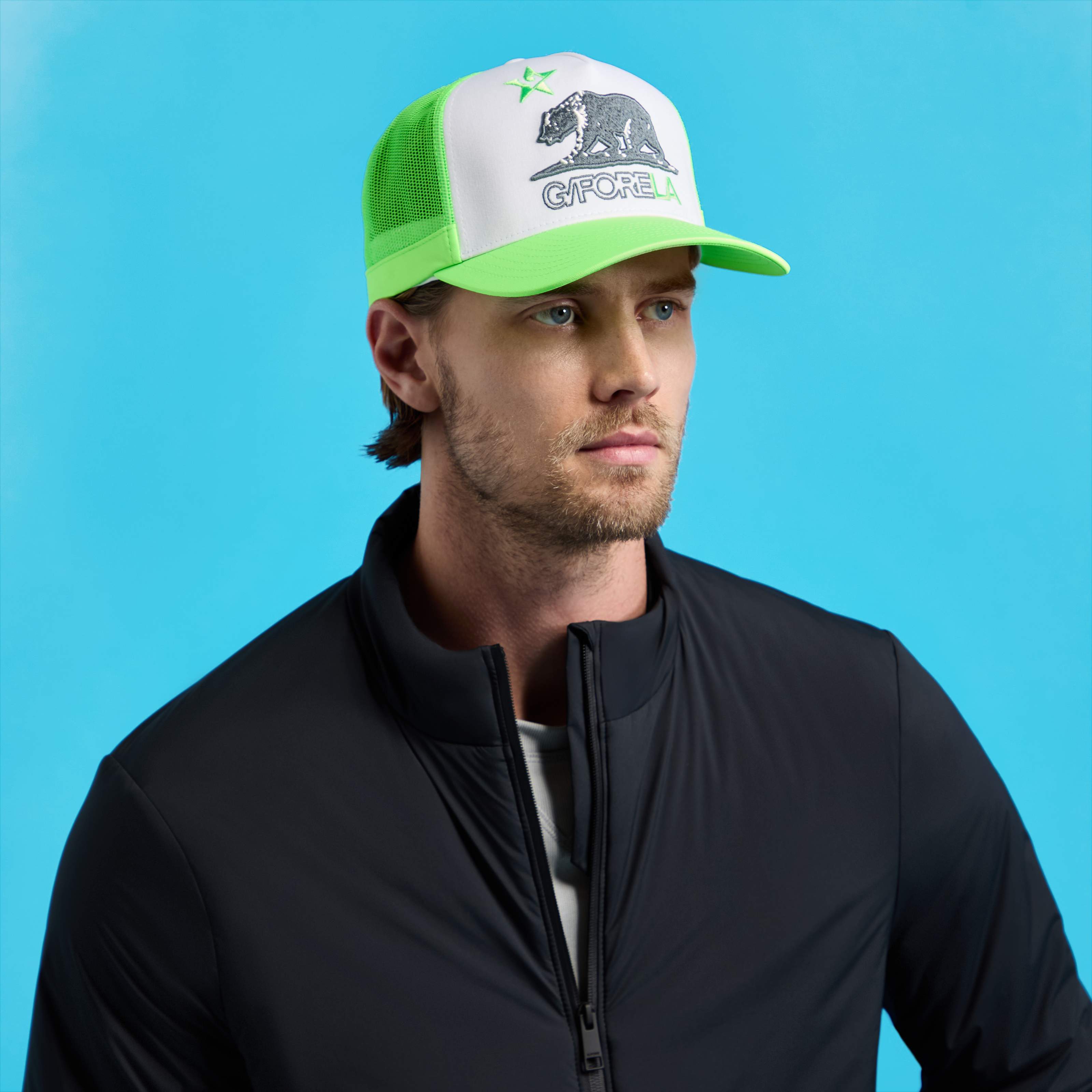 LOCK IN YOUR GAME WITH SUPERIOR SUN PROTECTION. EQUIPPED FOR OPTIMAL BREATHABILITY AND COMFORT WITH A BUILT-IN ATHLETIC SWEATBAND AND MESH BACK PANELS, THIS TRUCKER-STYLE HAT ADDS INTEREST TO ANY OUTFIT, ON OR OFF THE COURSE.