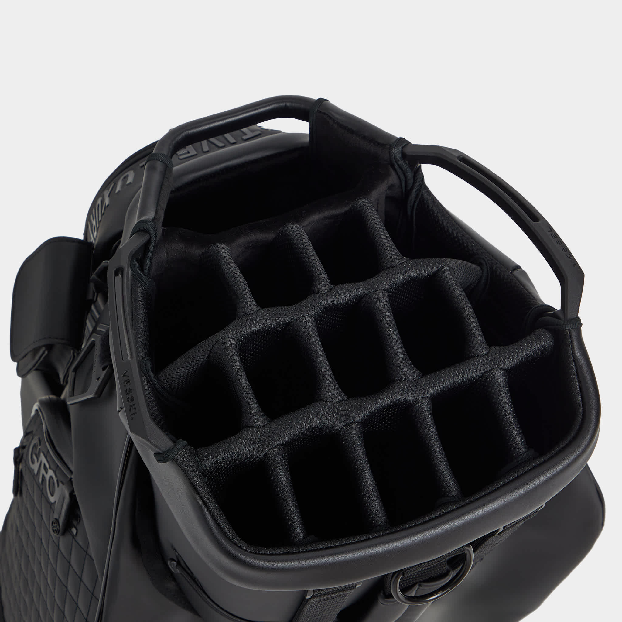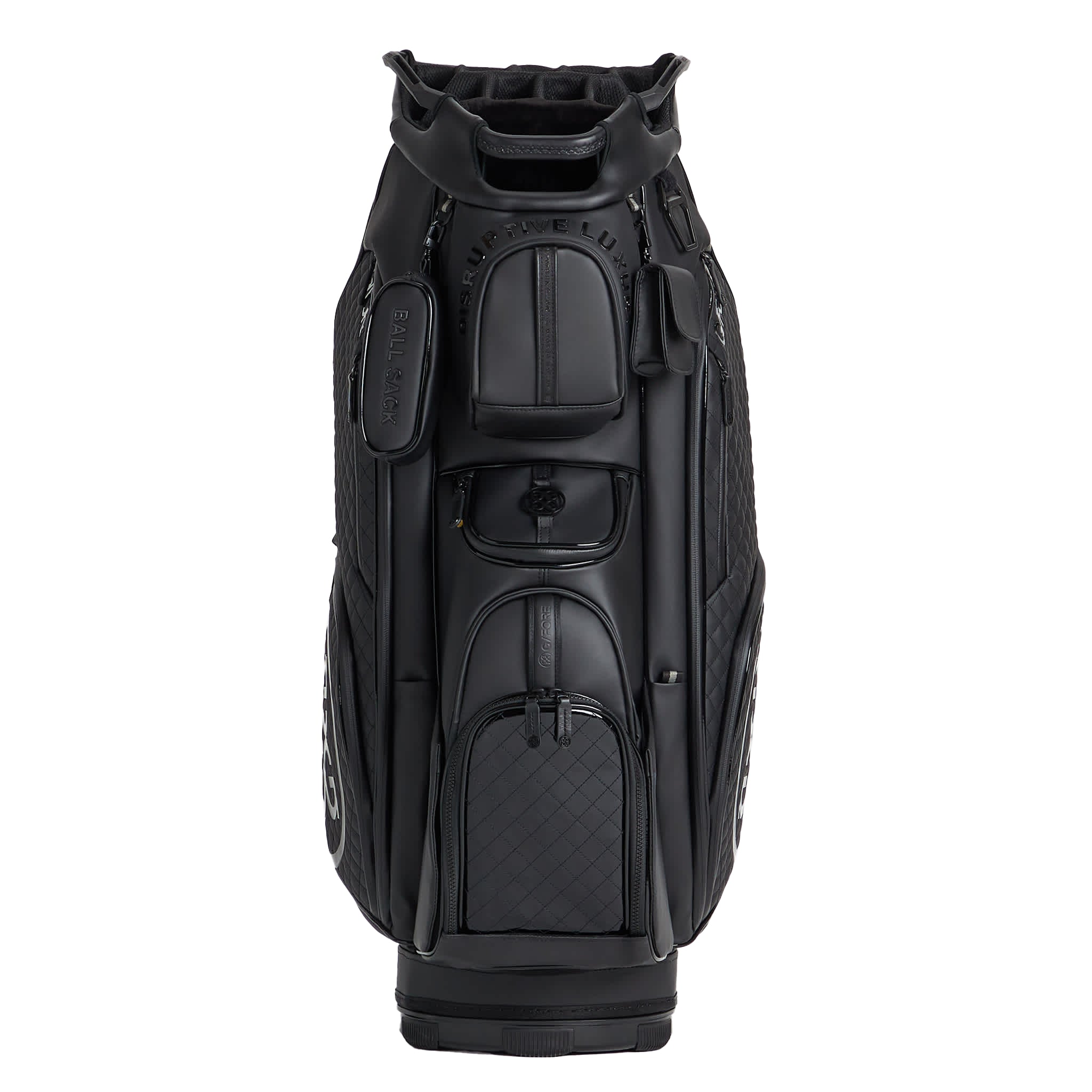 IT'S ALL ABOUT THE DETAILS IN THE NEW LUXE CART GOLF BAG. TAKING ORGANIZATION TO AN EXPERT LEVEL, THIS HIGHLY FUNCTIONING CARRY BAG OFFERS SEVENTEEN EXTERIOR POCKETS INCLUDING DUAL PEN SLOTS, A MAGNETIC RANGEFINDER POCKET, AND A COOLER COMPARTMENT WITH INSULATION AND DRAINAGE. MADE OF ABRASION RESISTANT PU WITH WATERPROOF ZIPPERS AND ODOR CONTROL LINING, IT'S DURABLE AND THOUGHTFULLY DESIGNED FOR ROUND AFTER ROUND. KEEP CLUBS ORGANIZED AND SECURE, READY TO TAKE YOUR GAME TO THE NEXT LEVEL.
