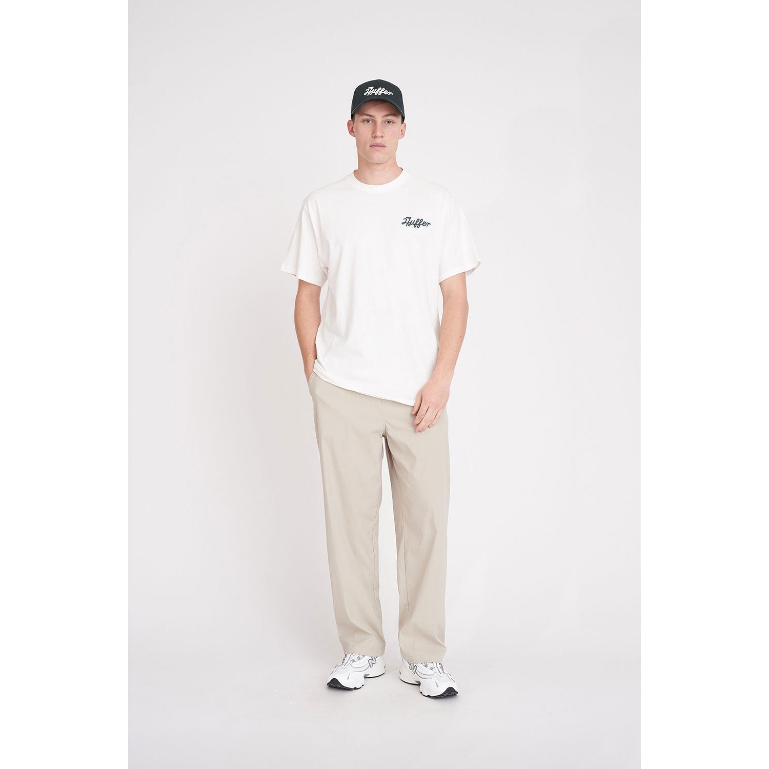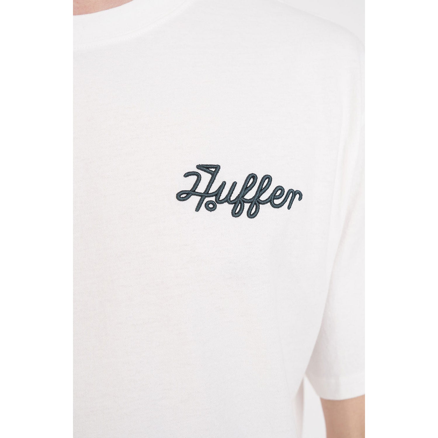 -Huffer branded placement crest embroidery located on the left chest