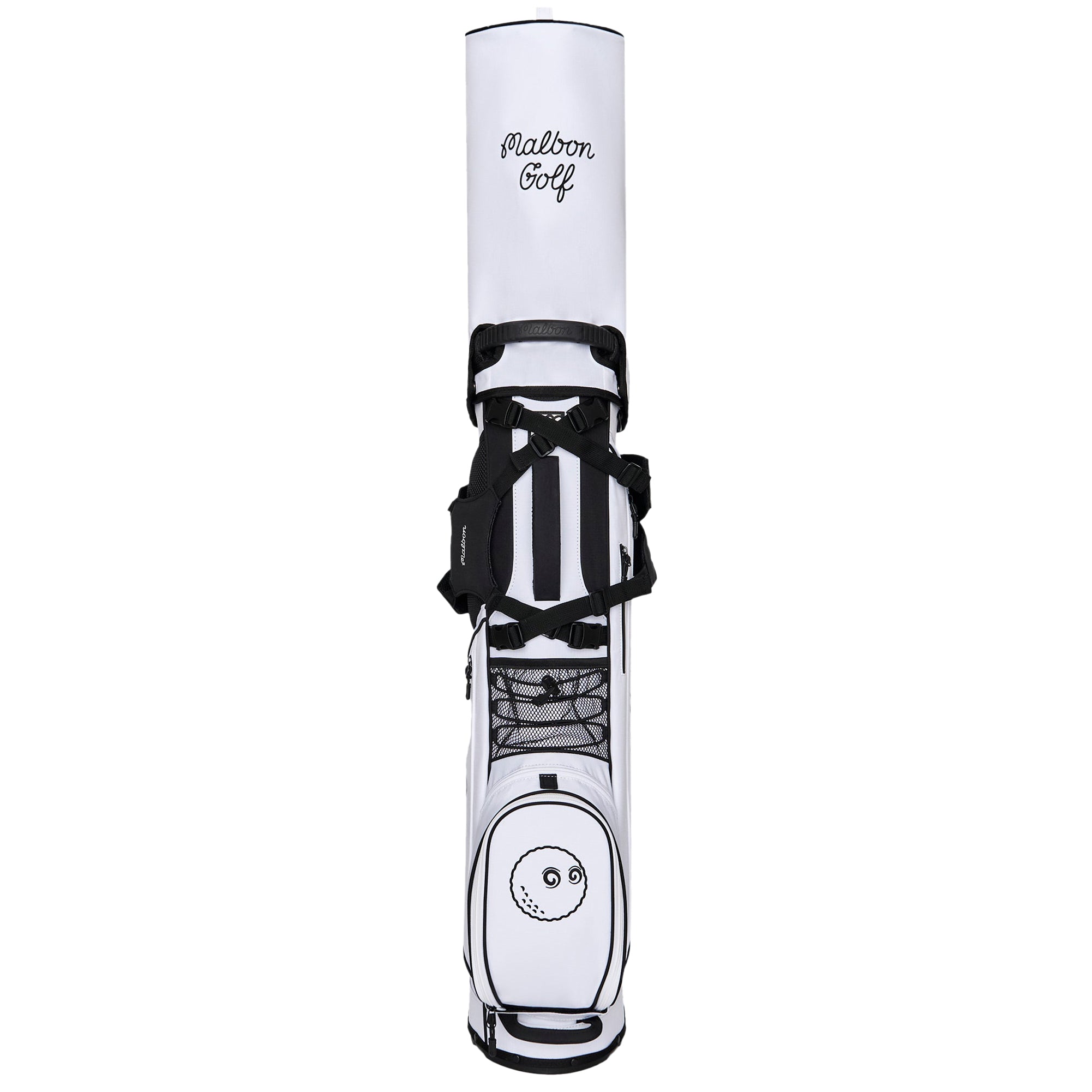 Showcasing signature Malbon branding, the Walking Bag is crafted from durable nylon rip-stop fabric, ensuring it can handle all your adventures on the course. It features multiple zippered pockets, including a convenient mesh rangefinder pocket and a magnetic closure pocket on the front for quick access to essentials. With a lightweight design—under six pounds—and cross back straps with clips, this golf bag provides maximum comfort for all-day rounds.