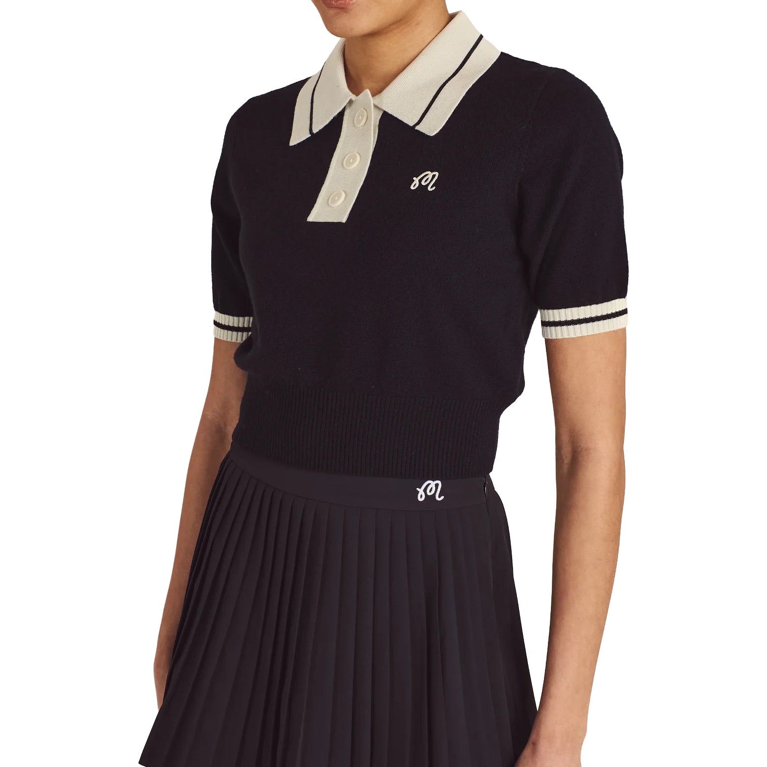 Effortless, Sporty, and Luxuriously Soft The Malbon Mikayla Knit Polo blends elevated materials with performance-minded design. Crafted from a soft wool and cashmere blend, its sleeveless cut allows for full swing mobility, while subtle branding and a classic silhouette make it a versatile, polished piece.