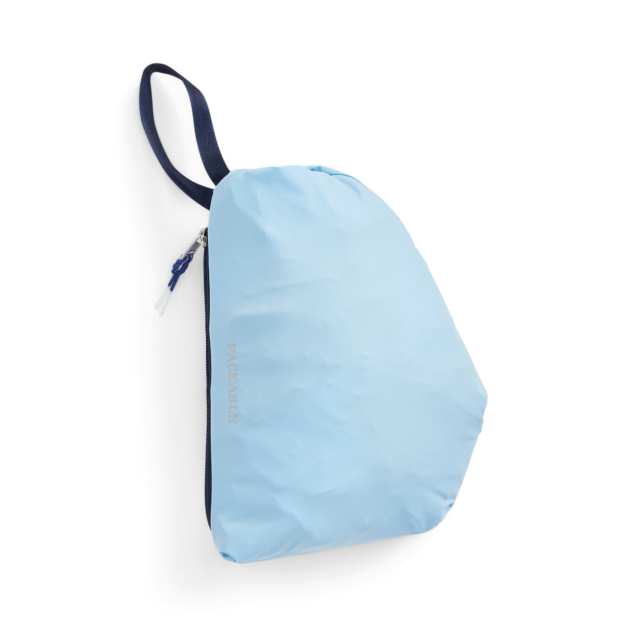 Packs into the chest pocket, which features a carrying loop at the interior.