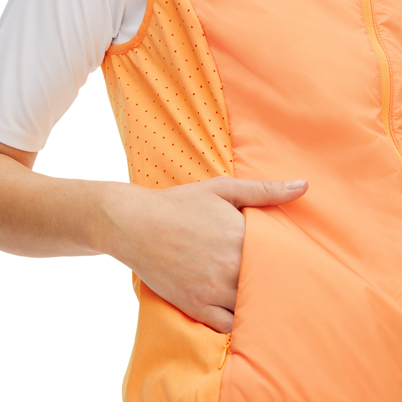 Made in 92% recycled polyester with fluorocarbon free DWR finish in the back and thin, recycled polyester padding in the front. Regular fit design with laser cut holes in the sides for even better ventilation. Detailed with a two-way zipper and zip pockets at front.
