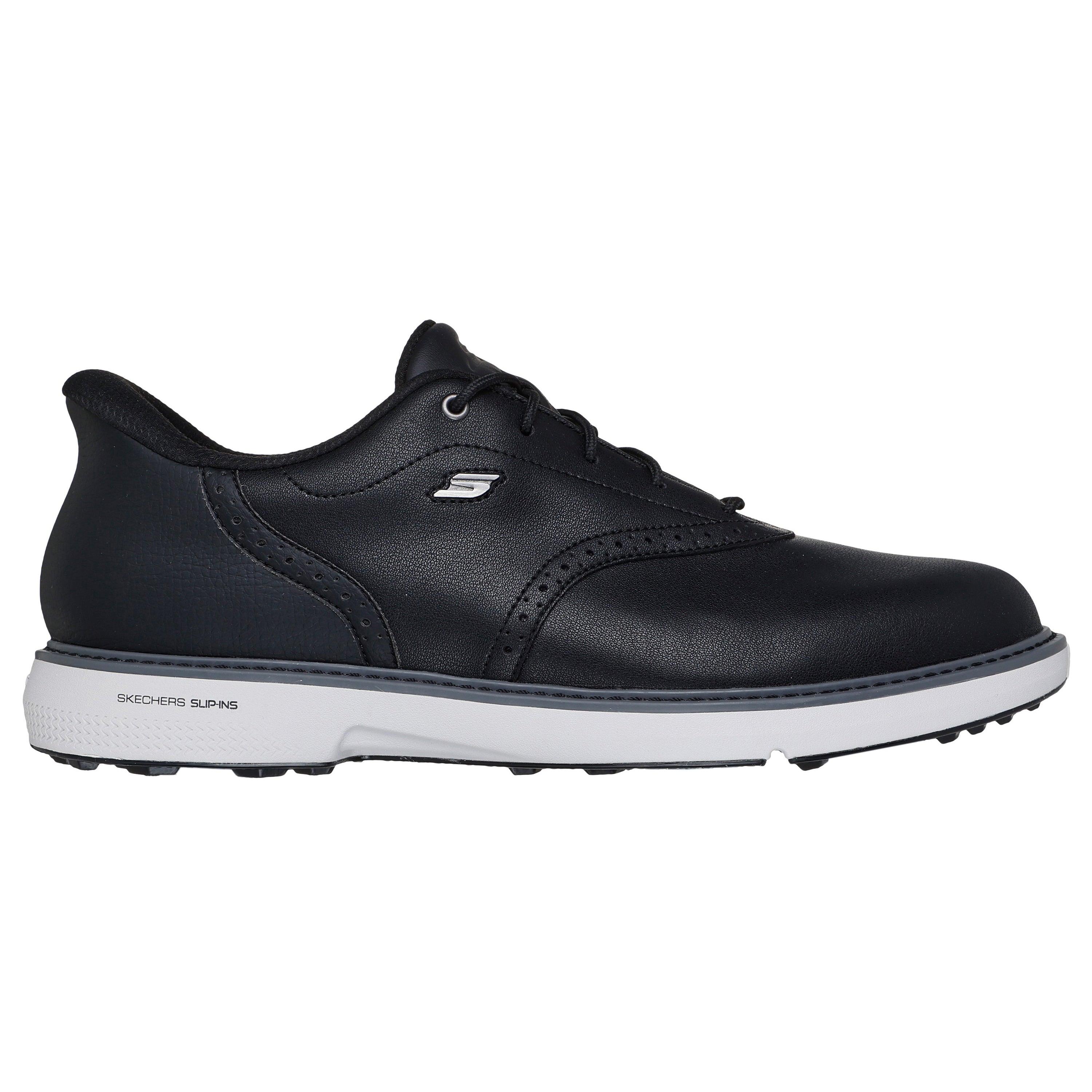 -Classic lace-up leather upper with detailed saddle oxford styling -Padded collar and tongue for extra comfort -Skechers GO GOLF® logo detail for a sophisticated and refined look