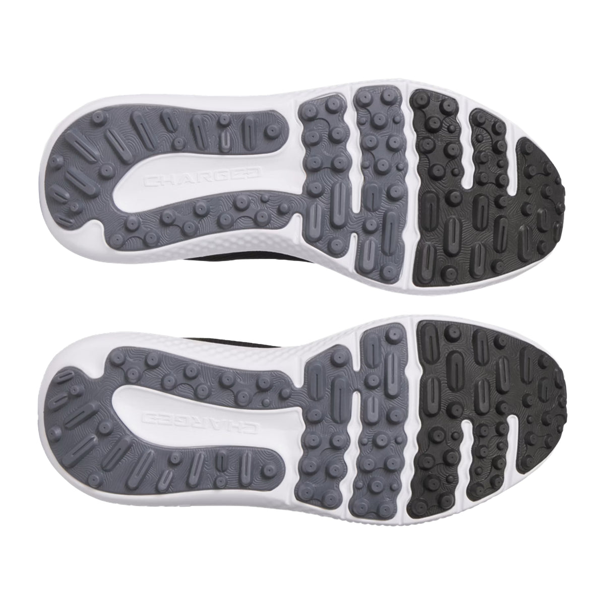 Golf shoes that keep your feet comfortable to keep you focused. The upper is light but durable, the Charged Cushioning® absorbs impact, and the Never-Wet treatment keeps you dry.