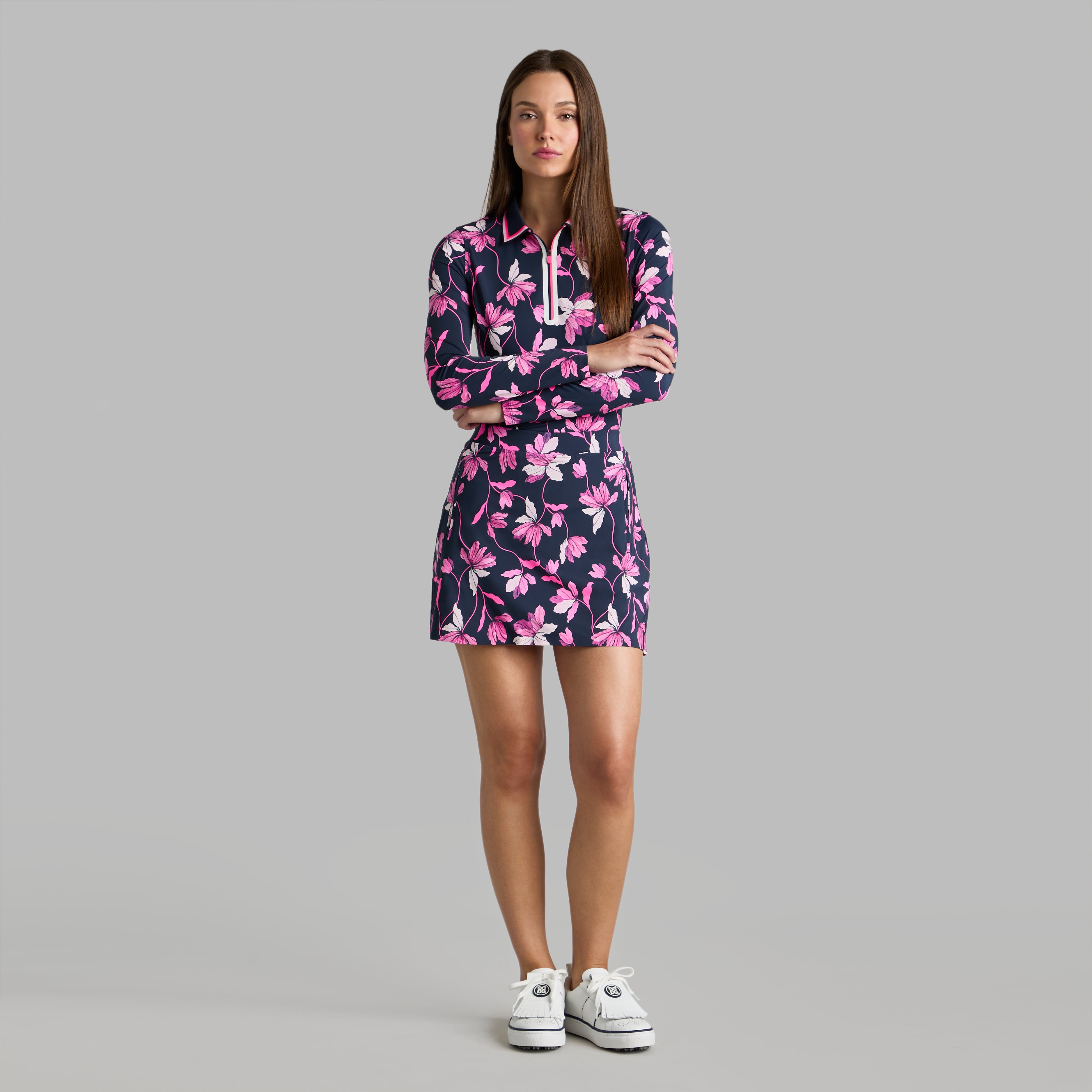 재미있는 IRIS 프린트로 제작된 SILKY TECH 나일론 스커트는 옷장의 어떤 상의와도 완벽하게 어울리는 아이템입니다. 습기 흡수 기능과 UPF 소재로 제작된 이 트렌드를 선도하는 SKORT는 내부에 실키 테크 나일론 반바지가 특징이며 냉각 효과가 있어 하루 종일 편안함을 제공합니다. 그린 위에서 공을 치는 것부터 시내에서 심부름을 하는 것까지 여러분을 안내합니다. 궁극의 세트를 위해 어울리는 긴팔 폴로 셔츠와 짝을 이루세요. 세부사항 매우 가벼운 SILKY TECH 나일론 소재로 제작 골프공과 개인 소지품을 쉽게 보관할 수 있는 지퍼가 달린 측면 포켓 밑단 근처의 실리콘 서클 G 로고 최고의 이동성을 위한 4방향 스트레치 디자인 신선하고 건조한 상태를 유지하는 수분 흡수 기능 추가 방어층을 위한 UPF 50+ 따뜻한 날에 이상적인 냉각 효과 맞춤 현주는 키가 5'9이고 IN TWILIGHT에서 X-Small 사이즈를 착용했습니다. 소재 나일론 78% / 엘라스테인 22%