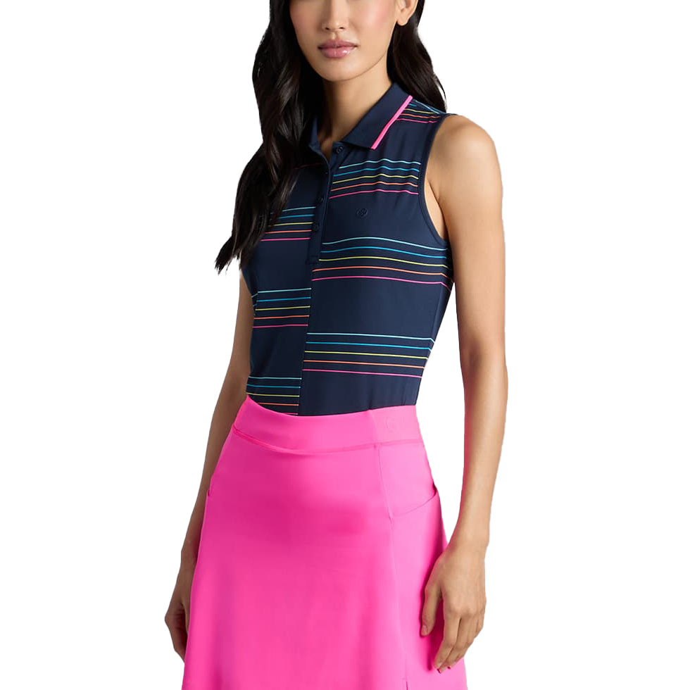 G/Fore Women 's Split Stripe Tech Pique Sleeveless Golf Polo Shirt -Twilight