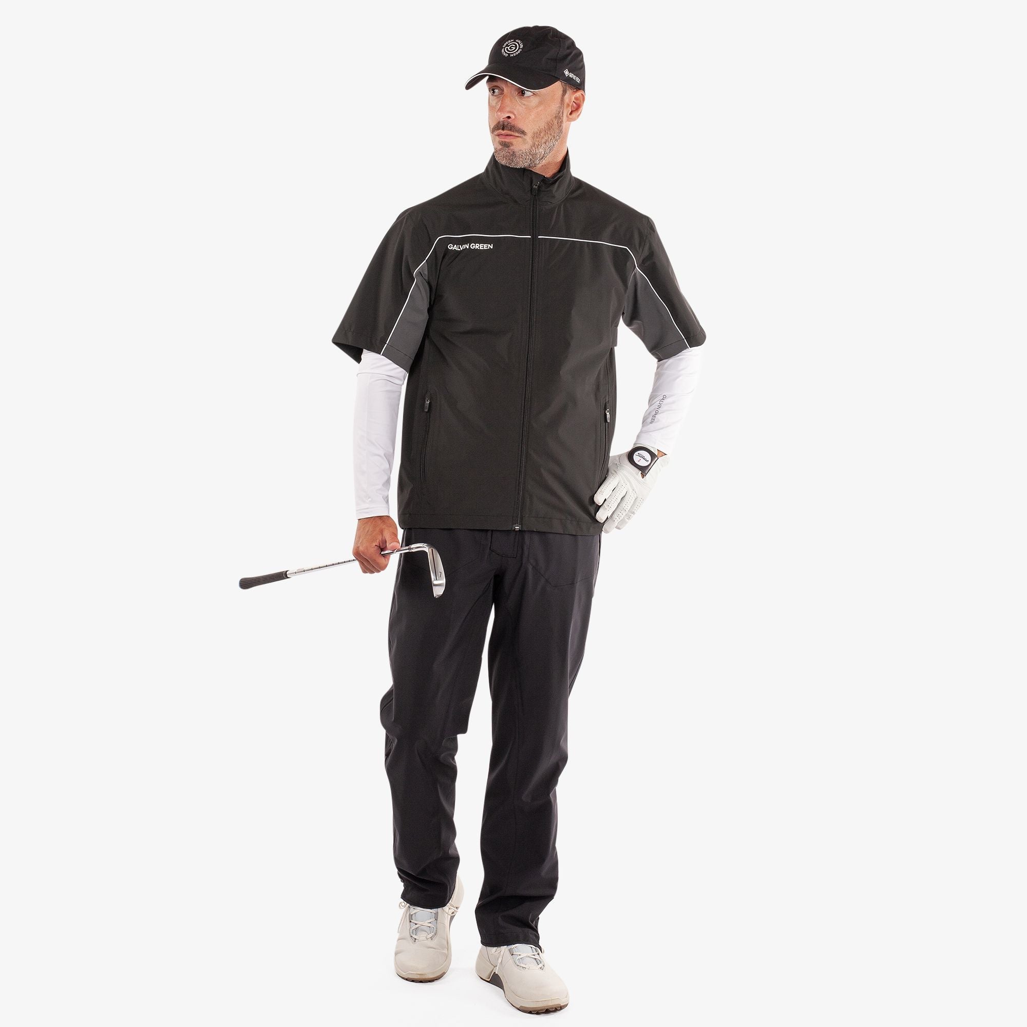 Galvin Green Air 방수 짧은 슬리브 골프 재킷 - 검은 색/단조 ​​철