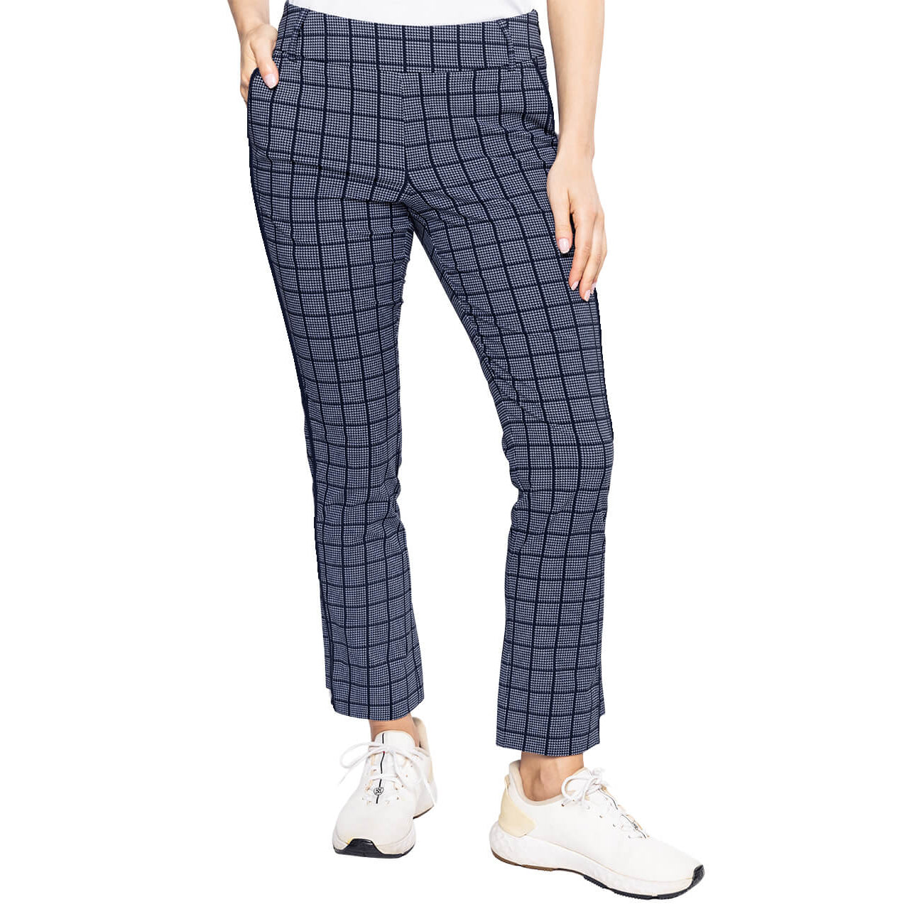 Golftini 여성용 스트레치 발목 골프 바지 - 네이비 체크 무늬