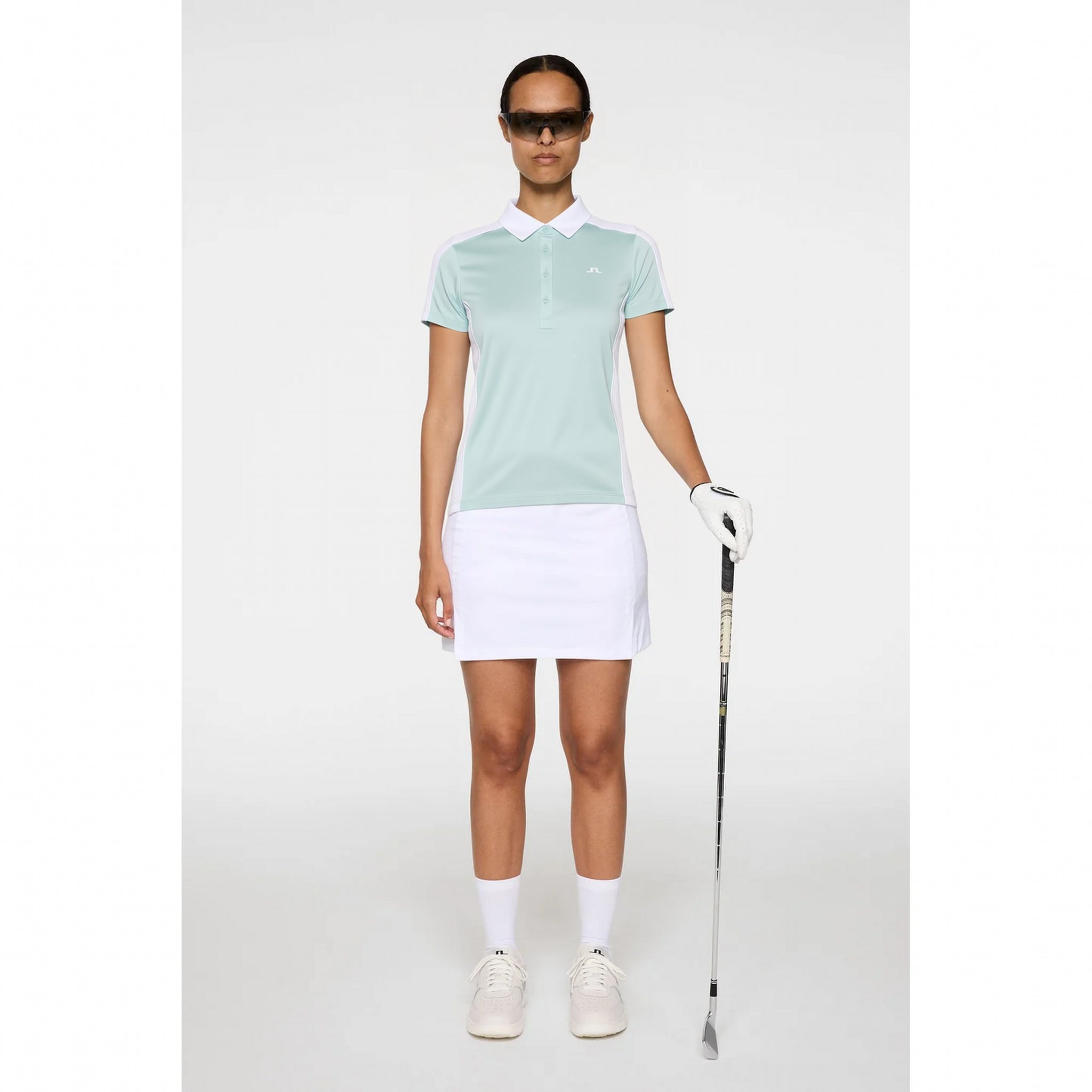 J.Lindeberg 여성용 데미 폴로는 클래식한 골프 실루엣에 현대적인 감각을 더했습니다. 세련된 파이핑 디테일, 골지 칼라, 브랜드 로고가 새겨진 신축성 있는 소매 커프가 있는 이 폴로 셔츠는 깔끔하고 운동적인 미학이 돋보입니다. 기술적인 4방향 스트레치 원단으로 제작된 이 제품은 뛰어난 통기성, 빠른 건조 및 수분 전달 특성을 제공하여 코스에서 활동적인 날에 적합합니다.