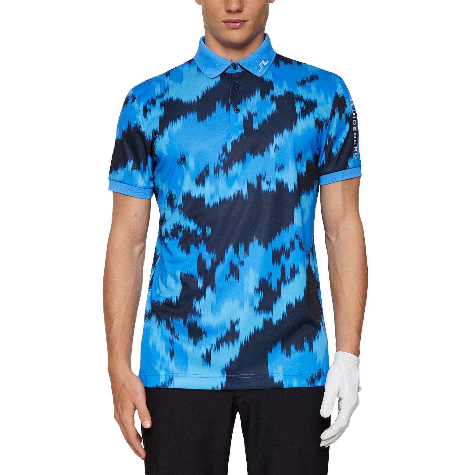 J.Lindeberg Tour Tech 일반 맞춤 인쇄 골프 폴로 셔츠 -Warp Sonic Blue
