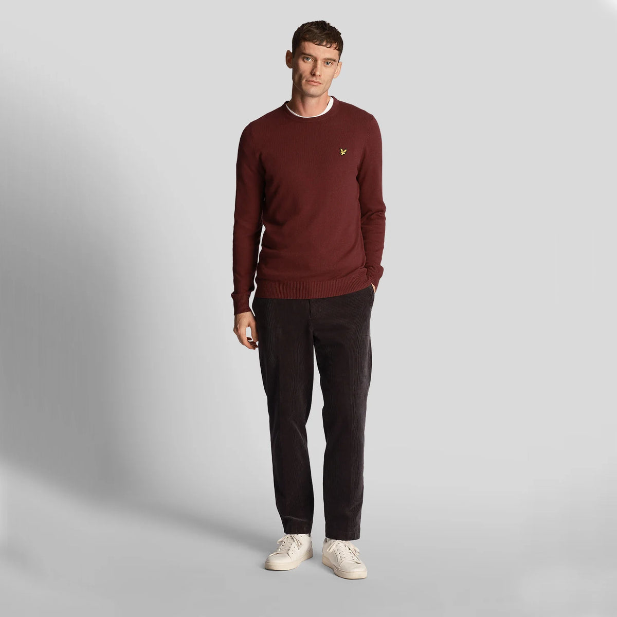 Lyle & Scott Cotton Merino Blend Crew Neck Pullover -Burgundy