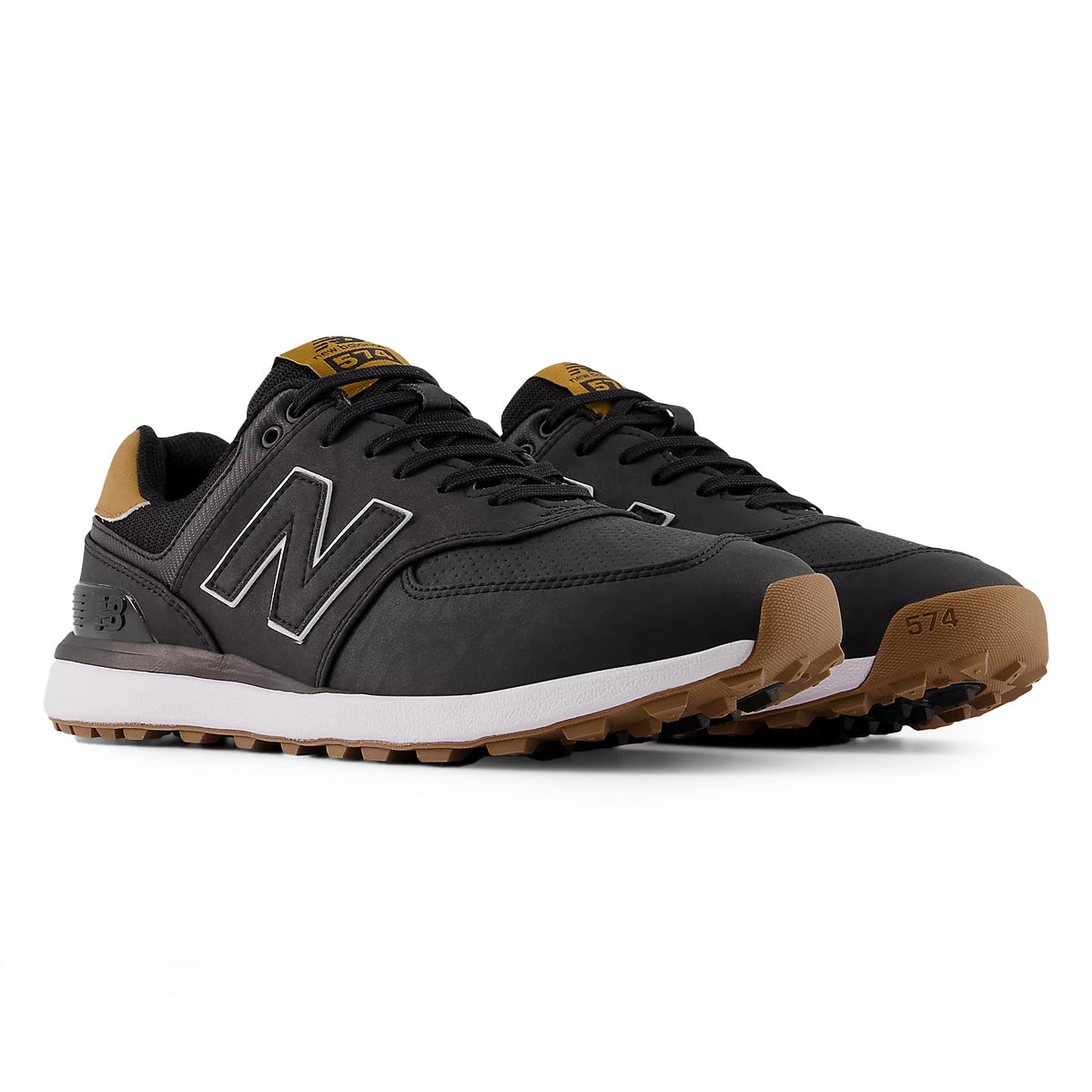 New Balance 574 Greens V2 Spikeless Wide (EE) 골프 신발 - 검은 색/껌