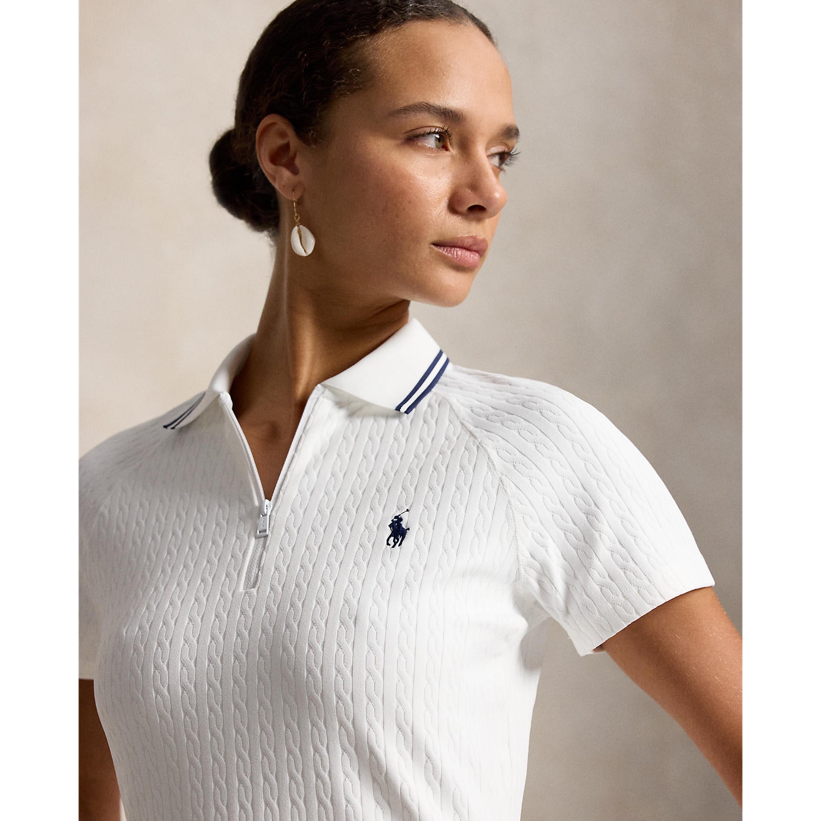 Introducing the RLX Cable Quarter-Zip Polo, a refined performance layer that brings elevated texture and modern sport styling to your golf wardrobe. Crafted from double-knit stretch jacquard with an allover cable motif, it delivers a polished look with the comfort and flexibility needed for movement on and off the course.