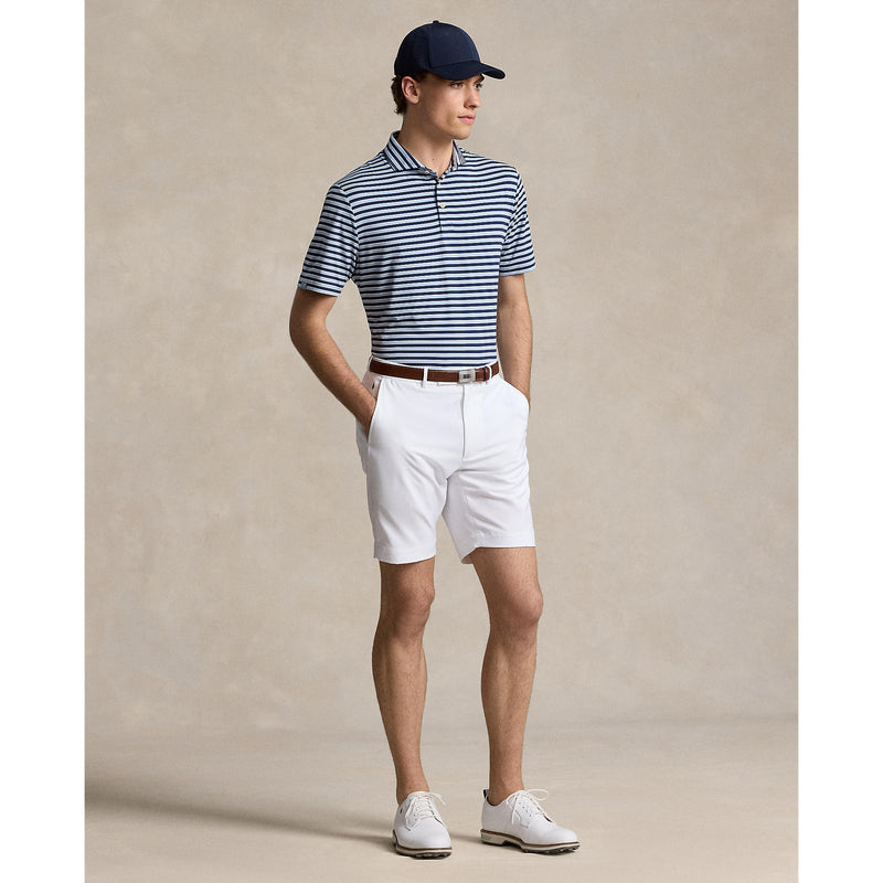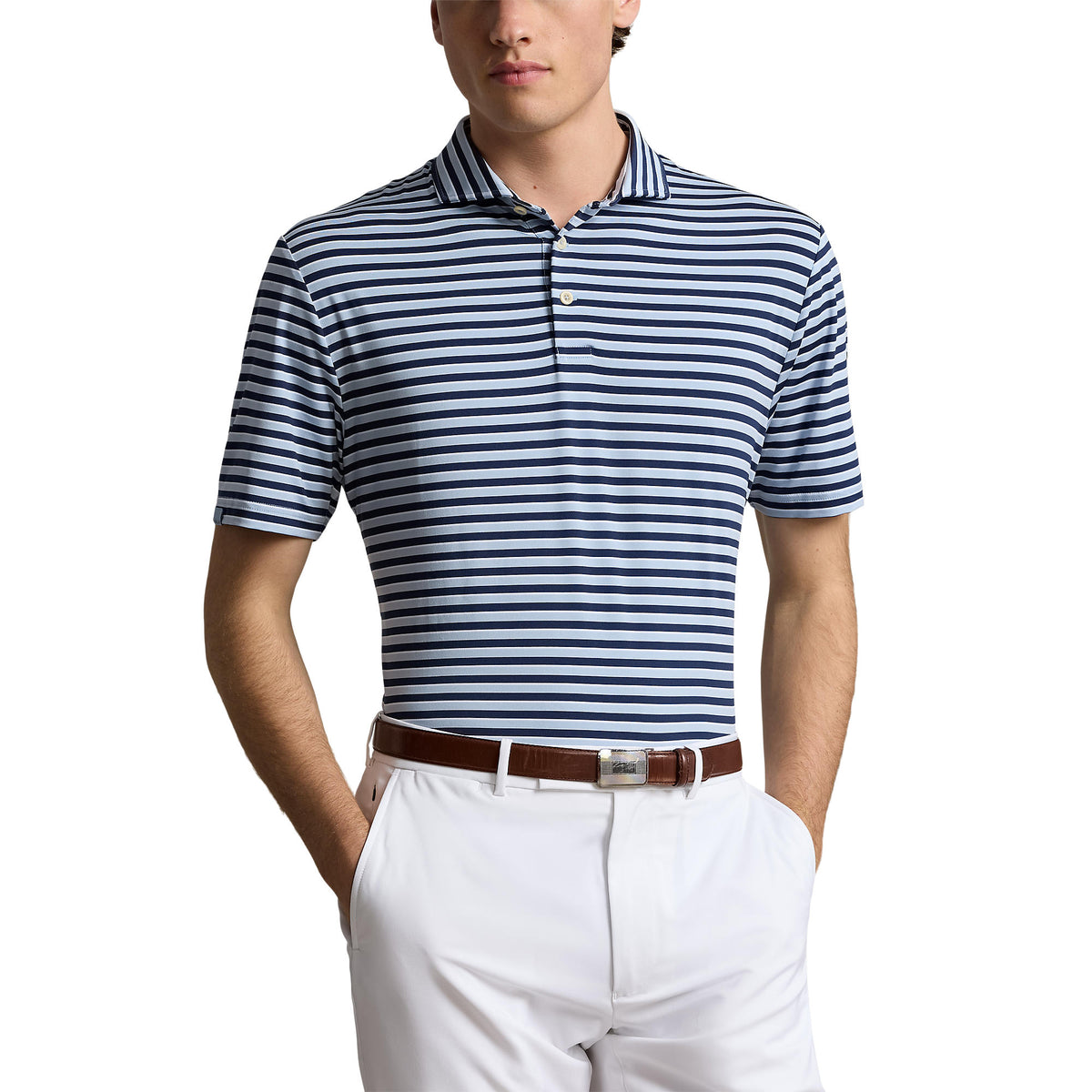 RLX RALPH LAUREN 스트라이프 가벼운 공기 흐름 골프 폴로 셔츠 - 부동산 블루 멀티