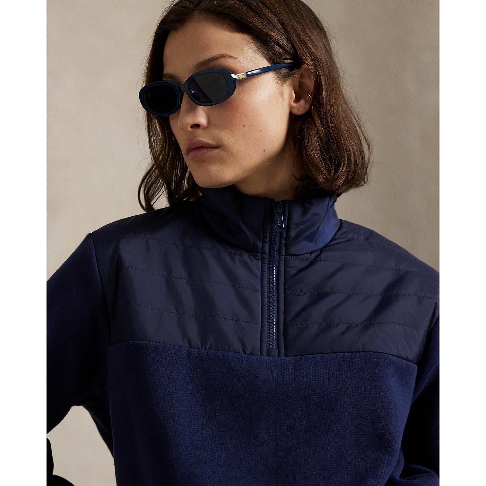 RLX RALPH LAUREN 여성 퀼트 양털 반 지퍼 - 정제 된 해군