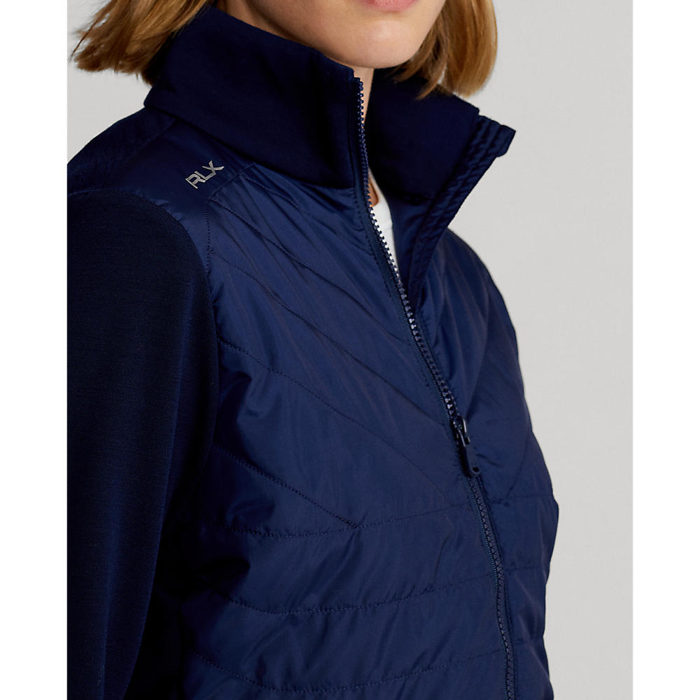퀼트 전면 패널은이 풀 ZIP 재킷에 단열재를 추가합니다.이 전체 ZIP 재킷은 칼라, 소매 및 뒤쪽의 부드러운 프랑스 테리로 제작됩니다. 서명 RLX 로고가 자세히 설명되어 있으며 허리에 Zip Pockets가 있습니다.