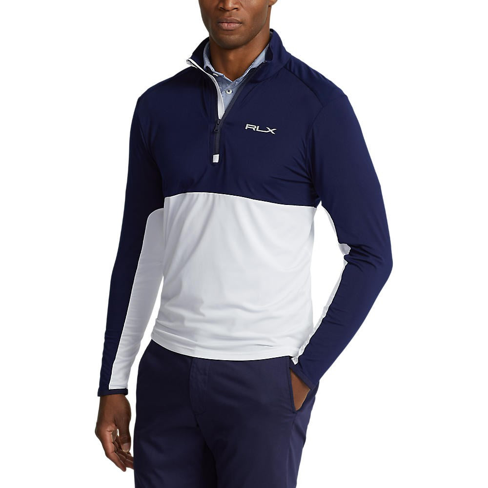 RLX RALPH LAUREN PEACHED AIRFLOW JERSEY 1/4 ZIP MIDLAYER- 순수한 화이트/ 프랑스 해군