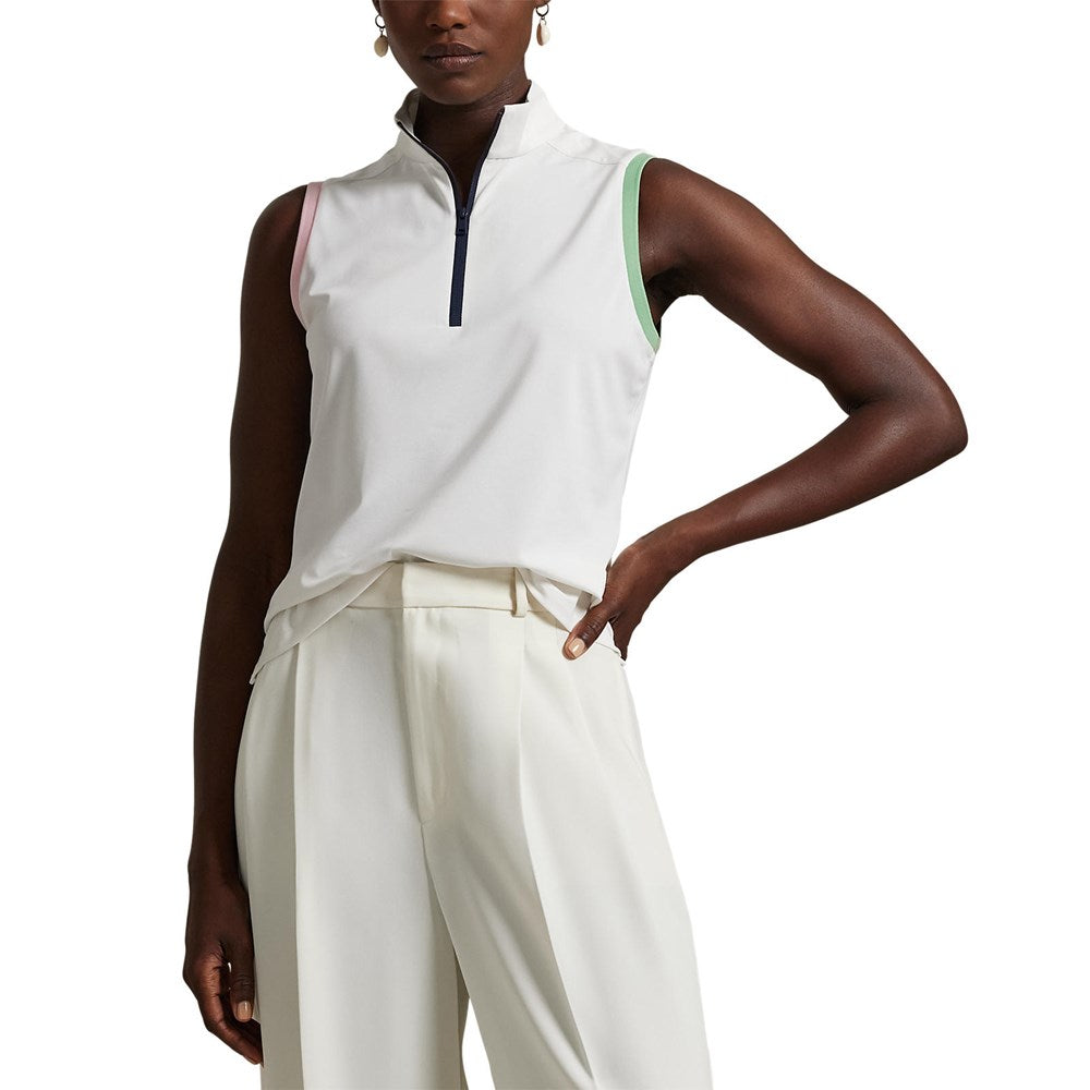 RLX RALPH LAUREN 여자 투어 피크 슬리빙 모의 목록 1/4 ZIP 골프 탑 - 화이트/가든 핑크/피스타치오