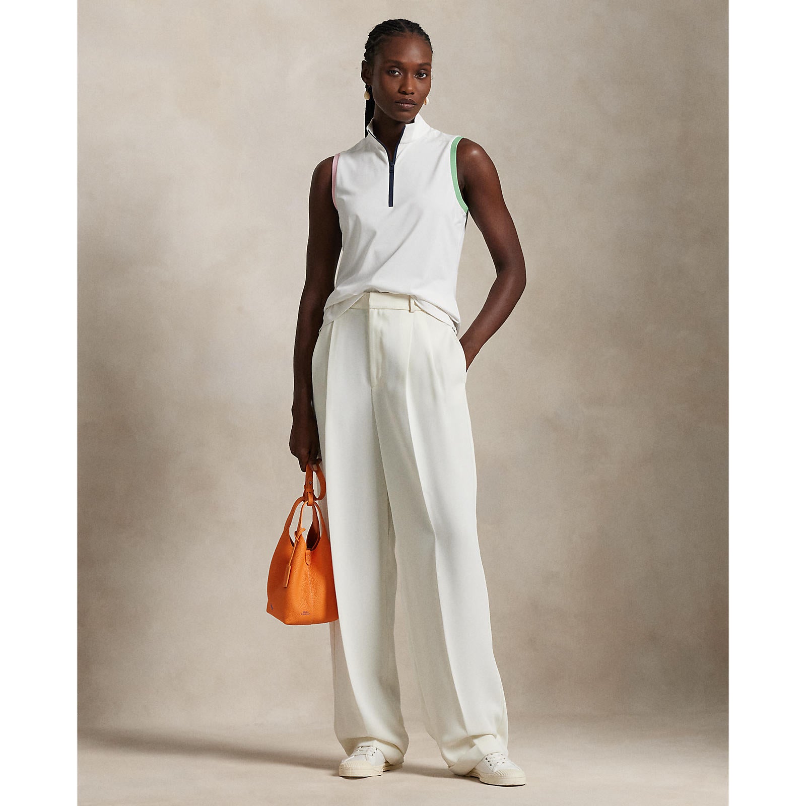RLX Ralph Lauren Sleeveless Quarter-Zip Polo 셔츠로 세련되고 슬림 한 핏을 위해 스트레치 피케에서 제작 한 골프 스타일을 높이십시오. 성능과 현대적인 매력을 위해 설계된이 폴로는 목 뒤쪽 중앙에 인쇄 된 시그니처 "RLX"로고를 특징으로합니다.