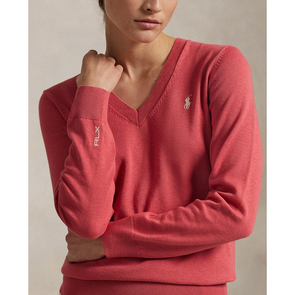 rlx ralph lauren 여자 면화 블렌드 v -neck 골프 점퍼 -Red Sky