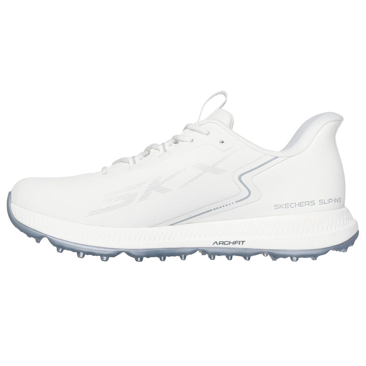 -ultra-lightweight, 반응 형 울트라 비행 ® 쿠션 -1 년 방수 보증 -합성 합성 오버레이 상단을 갖는 균형 메쉬 -패딩 된 칼라와 혀 -1/4 인치 클리트 -Skechers Go Golf® 로고 세부 사항