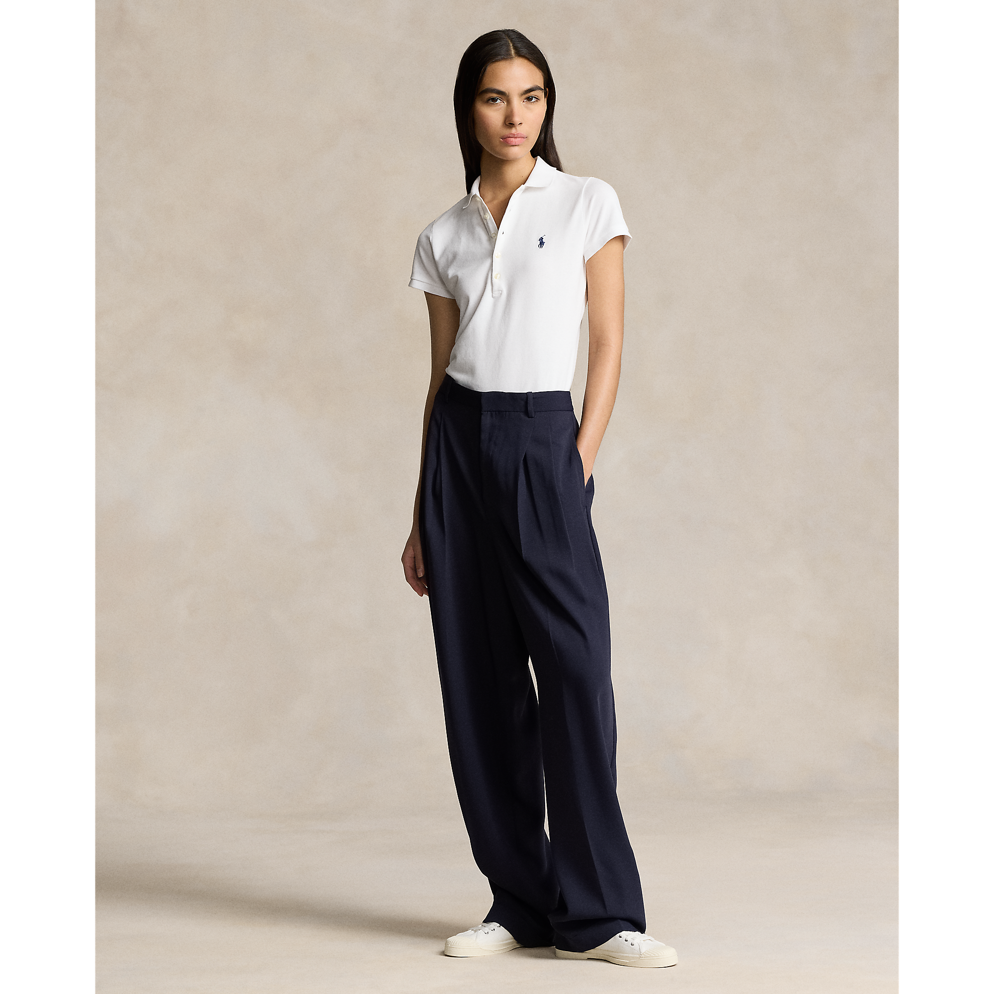 - 늑골 폴로 칼라. - 5 버튼 플래킷. - 늑골이있는 짧은 소매. - 심지어 배출 된 밑단. - 왼쪽 가슴에 서명 자수 조랑말.