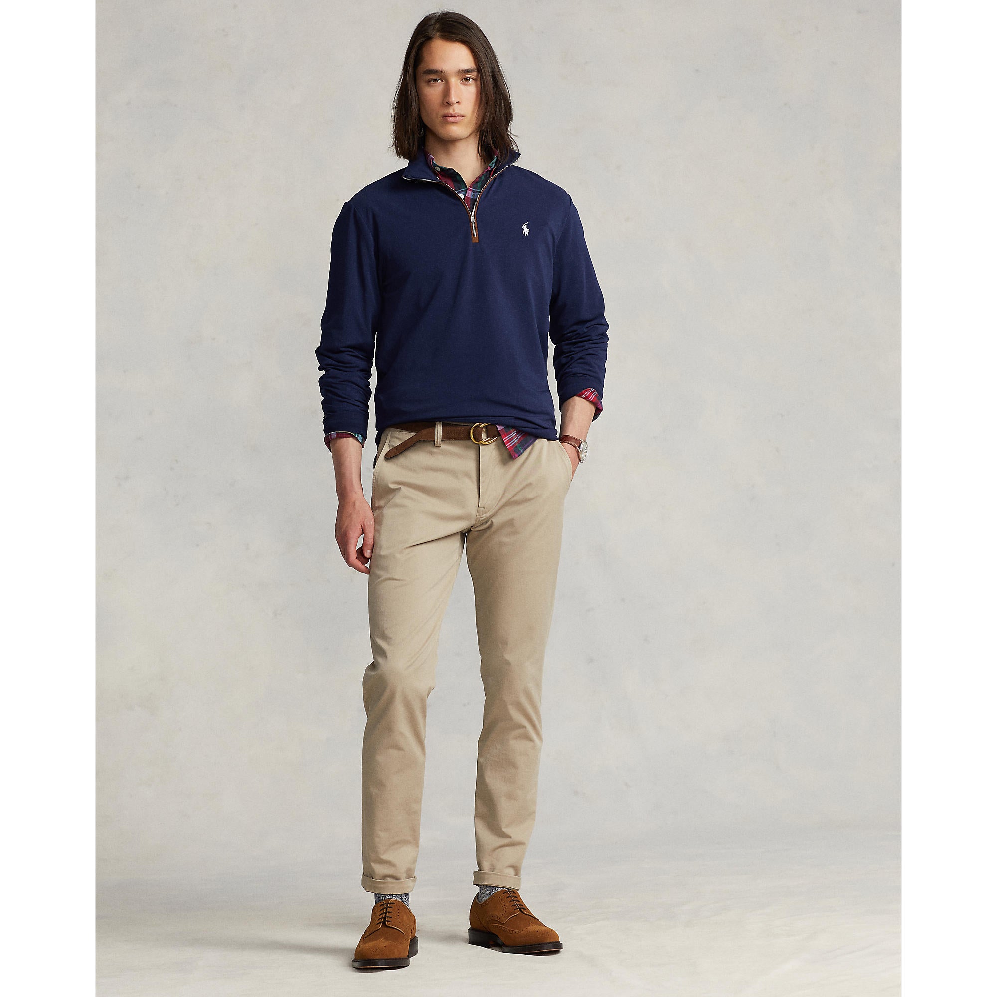 클래식 핏, 랄프 로렌의 가장 넓은 실루엣과 하단 암홀과 풀러 슬리브가있는 최대의 편안함.