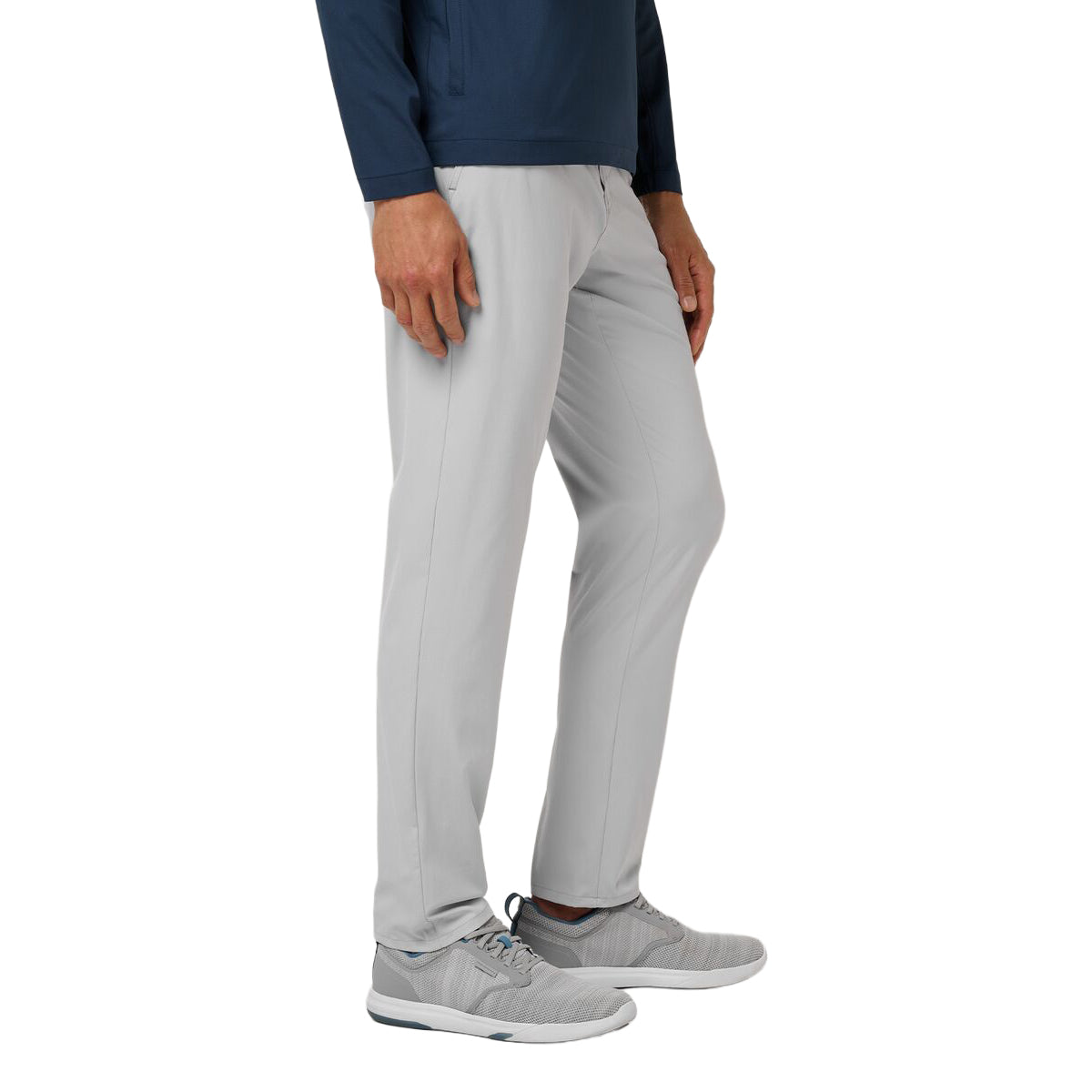 Functional Design: Silicone-grip interior waistband with belt loops; invisible zipper pocket on right side seam; double welt back pockets