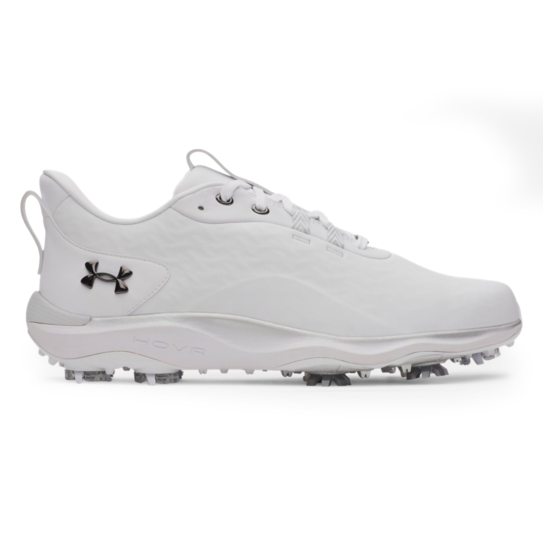 Energy-returning UA HOVR™ foam combined with Charged Cushioning® helps guide natural foot motion, while UA S3 spikes — developed with Softspikes and a golf biomechanist — deliver exceptional directional traction. Strategic flex grooves, secondary traction elements, and TPU sidewall support enhance stability at impact for confident performance on every shot.