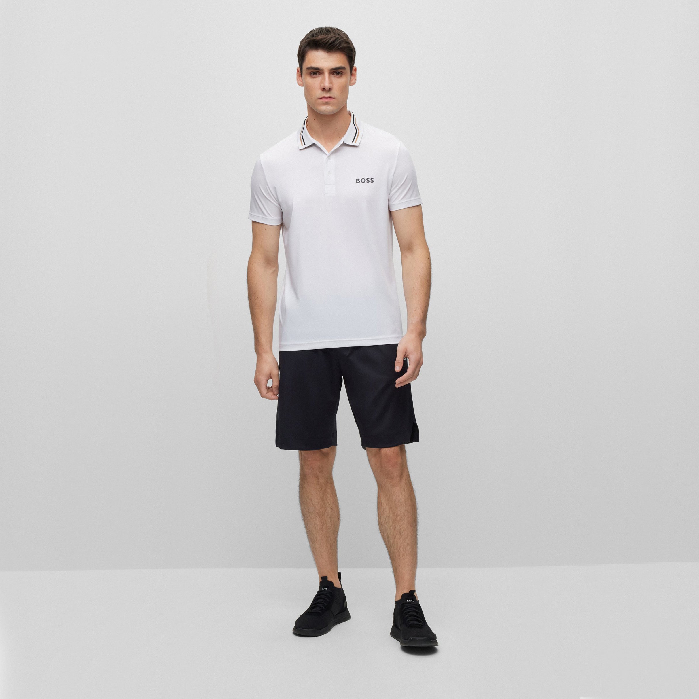 老板男装的短袖polo衬衫在拉伸球衣中切成一条直适合的球衣。 Dynamic Boss X Matteo Berrettini胶囊系列的一部分,由意大利专业网球运动员共同创建。