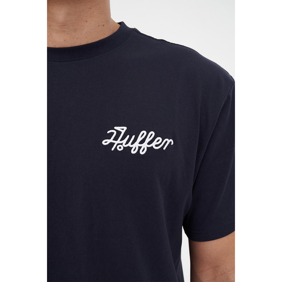 -Huffer 品牌徽章刺绣位于左胸