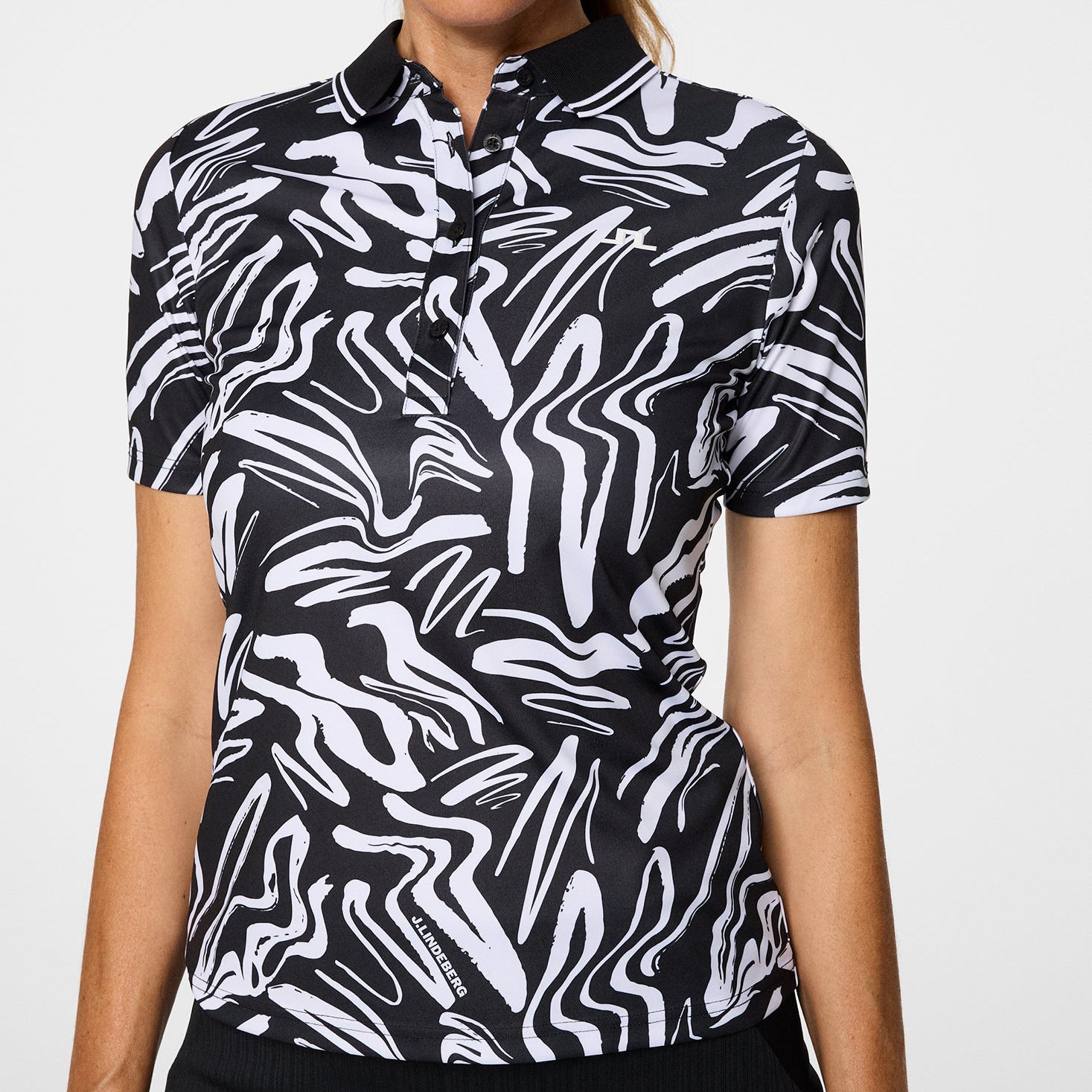 J.Lindeberg 女式 Georgia 印花 Polo 高尔夫衬衫 - Scribble JL 海军蓝