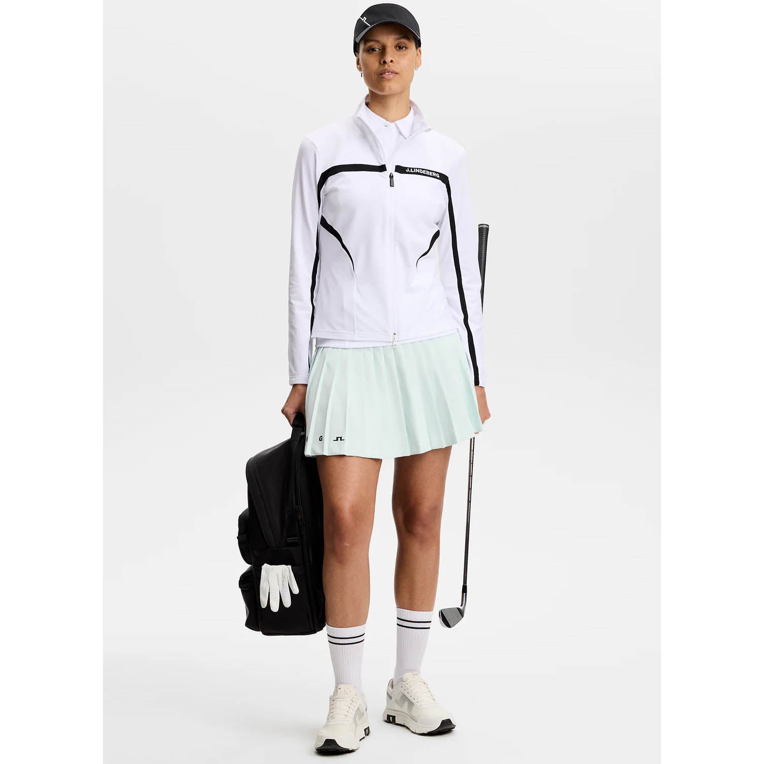 J.Lindeberg 女式 Janice 全拉链高尔夫中层 - 白色