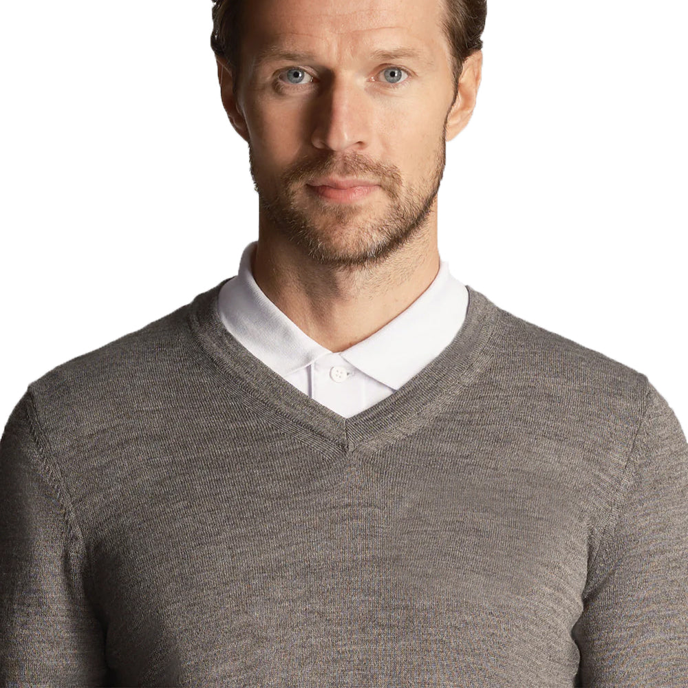 Lyle&Scott Tonal Eagle Merino Blend V Neck Knit-中间灰色MARL