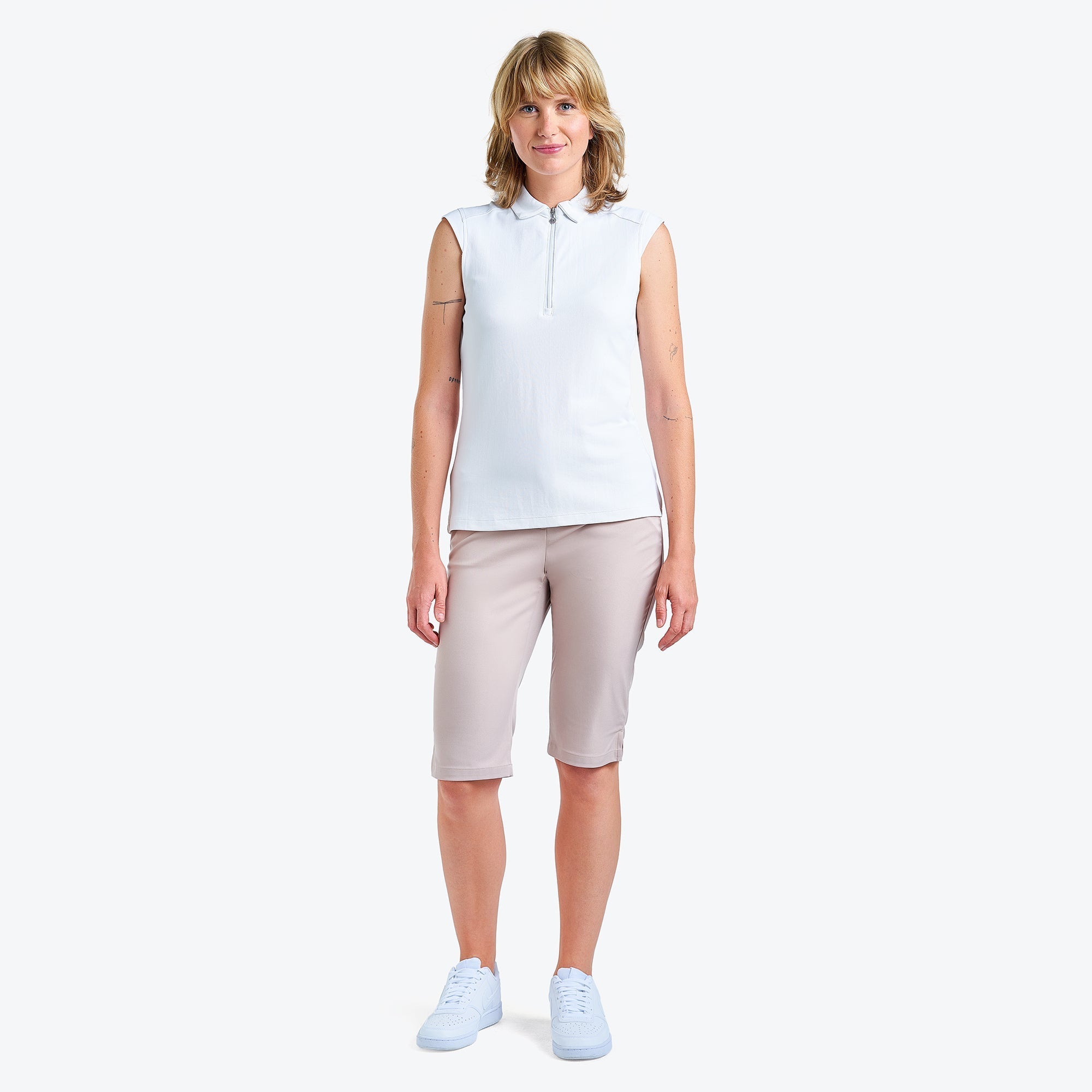 Nivo 女式 Nikki II 无袖小高领高尔夫 Polo 衫 - 白色