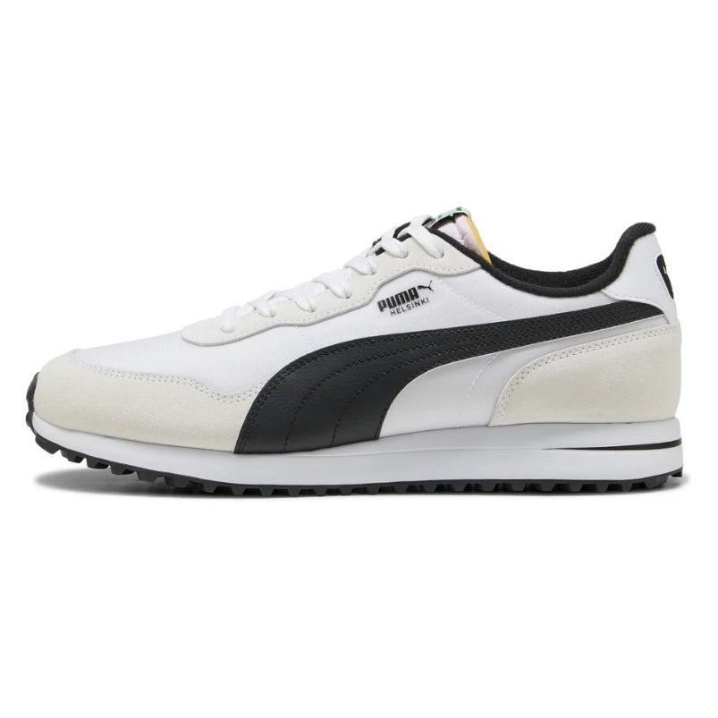 Puma Helsinki G无尖力的高尔夫球鞋是街头风格和高尔夫表演的大胆融合,为课程带来了复古的氛围。受Puma运动鞋的启发,Silhouette在提供课堂上的牵引力和舒适性的同时,提供了副业的吸引力。
