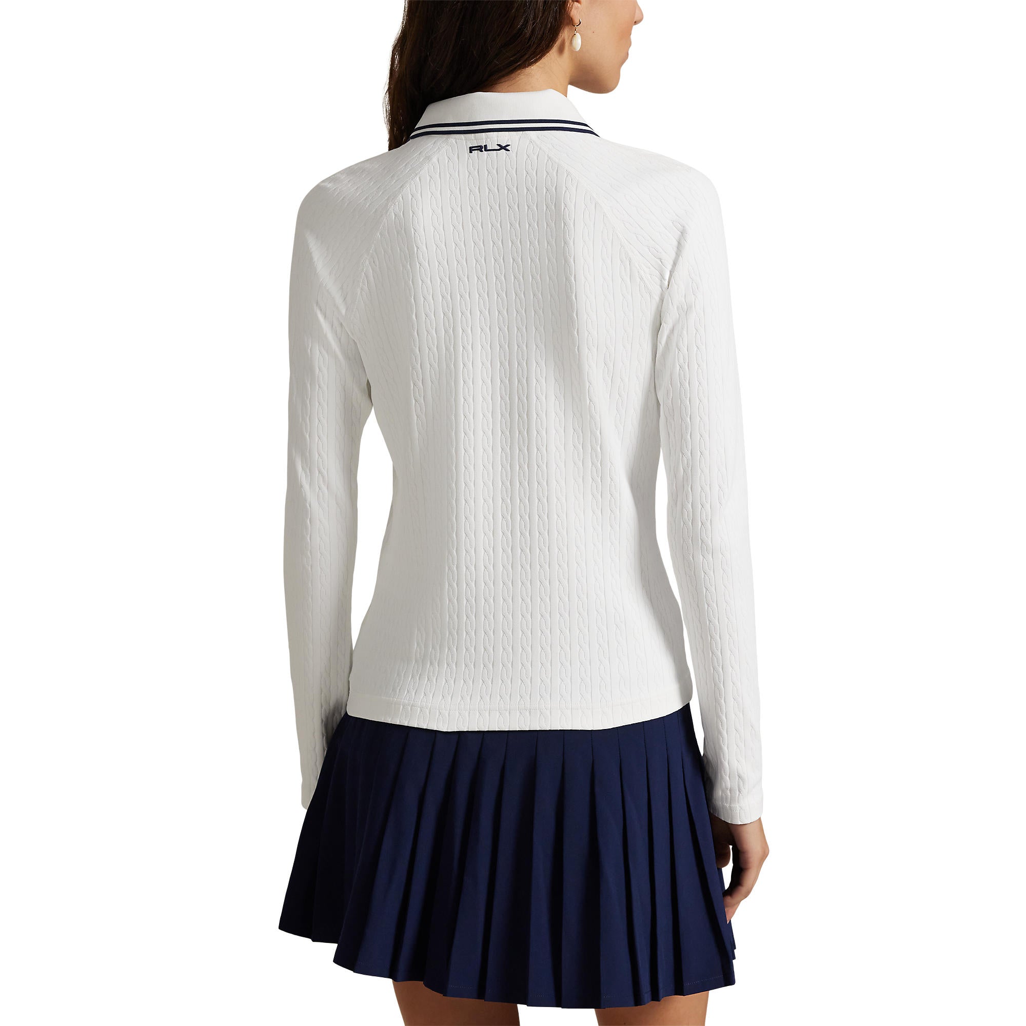 This quarter-zip polo combines classic RLX style with modern texture and stretch for a polished, athletic look. The cable-knit detailing adds sophistication, while the slim fit and raglan sleeves ensure freedom of movement. Perfect for golfers seeking refined style and performance-ready comfort, this polo is an essential layering piece for your active wardrobe.