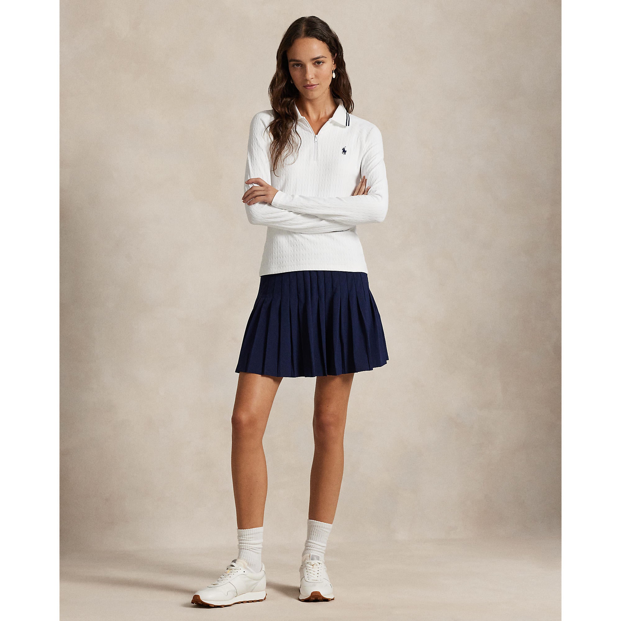 The RLX Ralph Lauren Women’s Cable-Knit Quarter-Zip Polo blends classic Polo styling with modern, performance-driven design. Crafted from double-knit fabric with a subtle cable-knit motif, this slim-fit polo offers refined texture, stretch, and a flattering silhouette, perfect for layering on the course or wearing on its own.