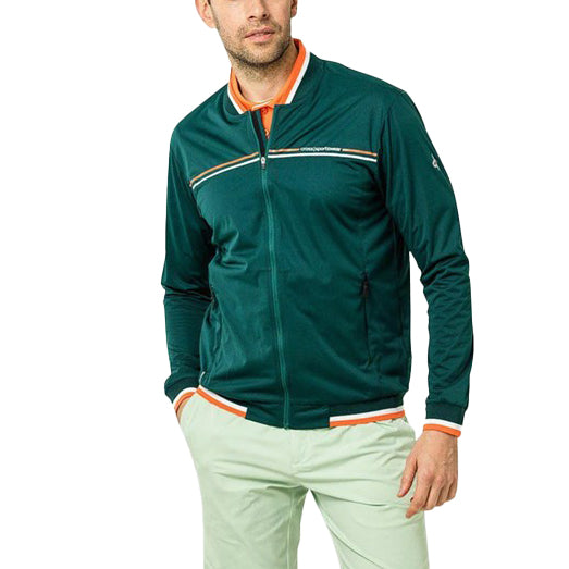 用低噪声2层4向拉伸面料制成的技术防风和透气的风夹克。设计为轰炸机夹克,使其成为高尔夫或行动自由的其他活动的终极外套。